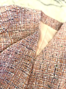 ミックスカラーのツイードだから、明るい色でも合わせやすい。